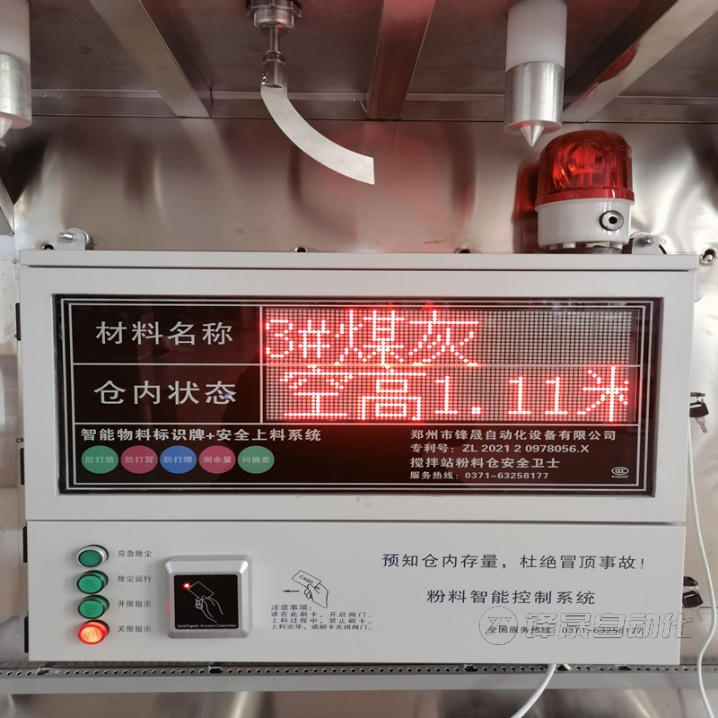 底上料口附近安裝自動上料控制終端、自動上料閥、每個料倉倉底安裝以上設(shè)備各 1 個,自動上料終端配有顯示屏,顯示空當(dāng)前空倉高度 及倉內(nèi)料位庫存,高位報警,上料閥狀態(tài),